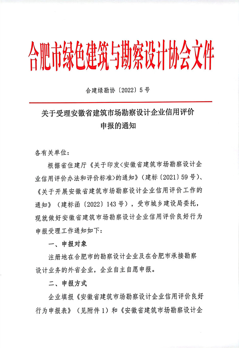 关于受理安徽省建筑市场勘察设计企业信用评价申报的通知