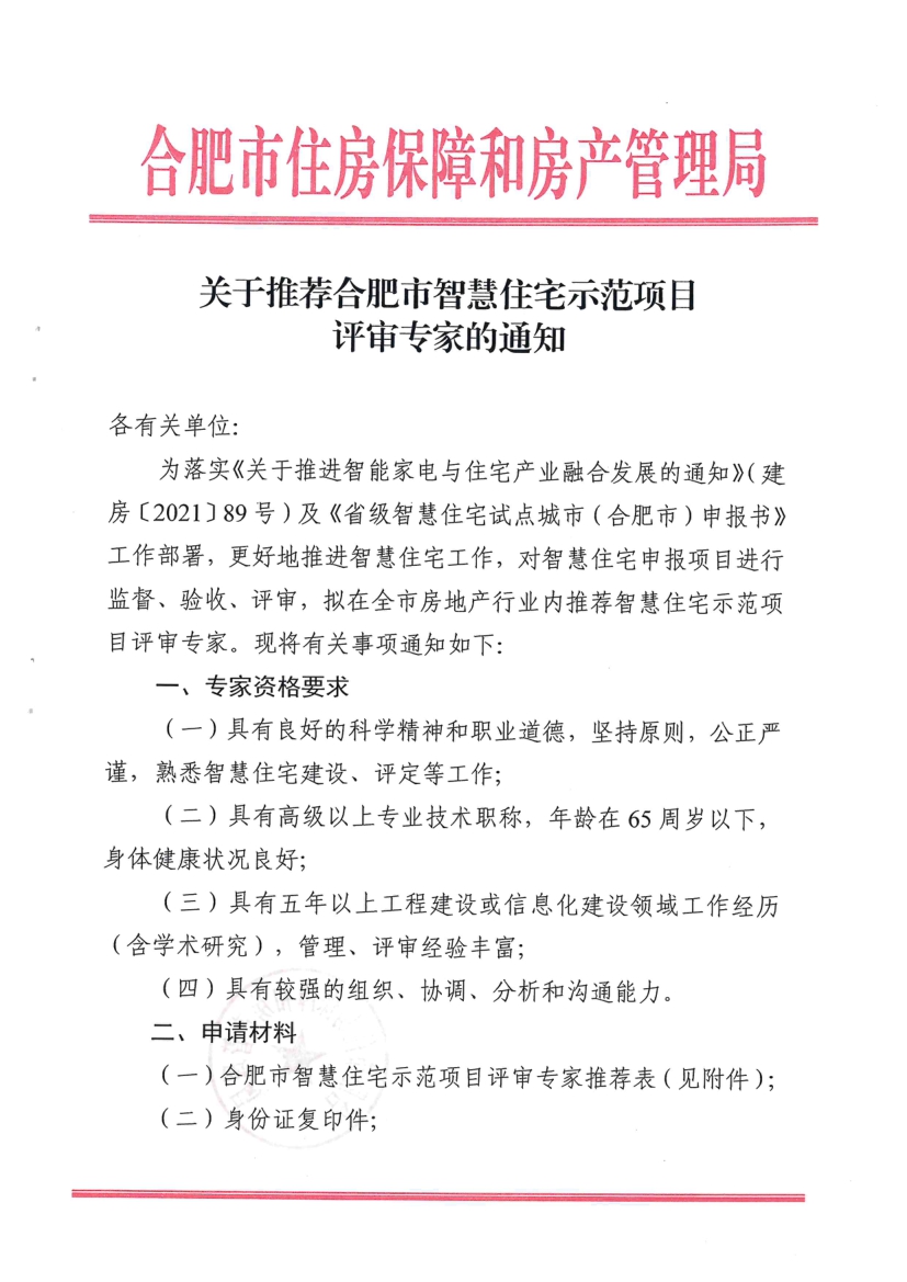 关于推荐合肥市智慧住宅示范项目评审专家的通知.pdf