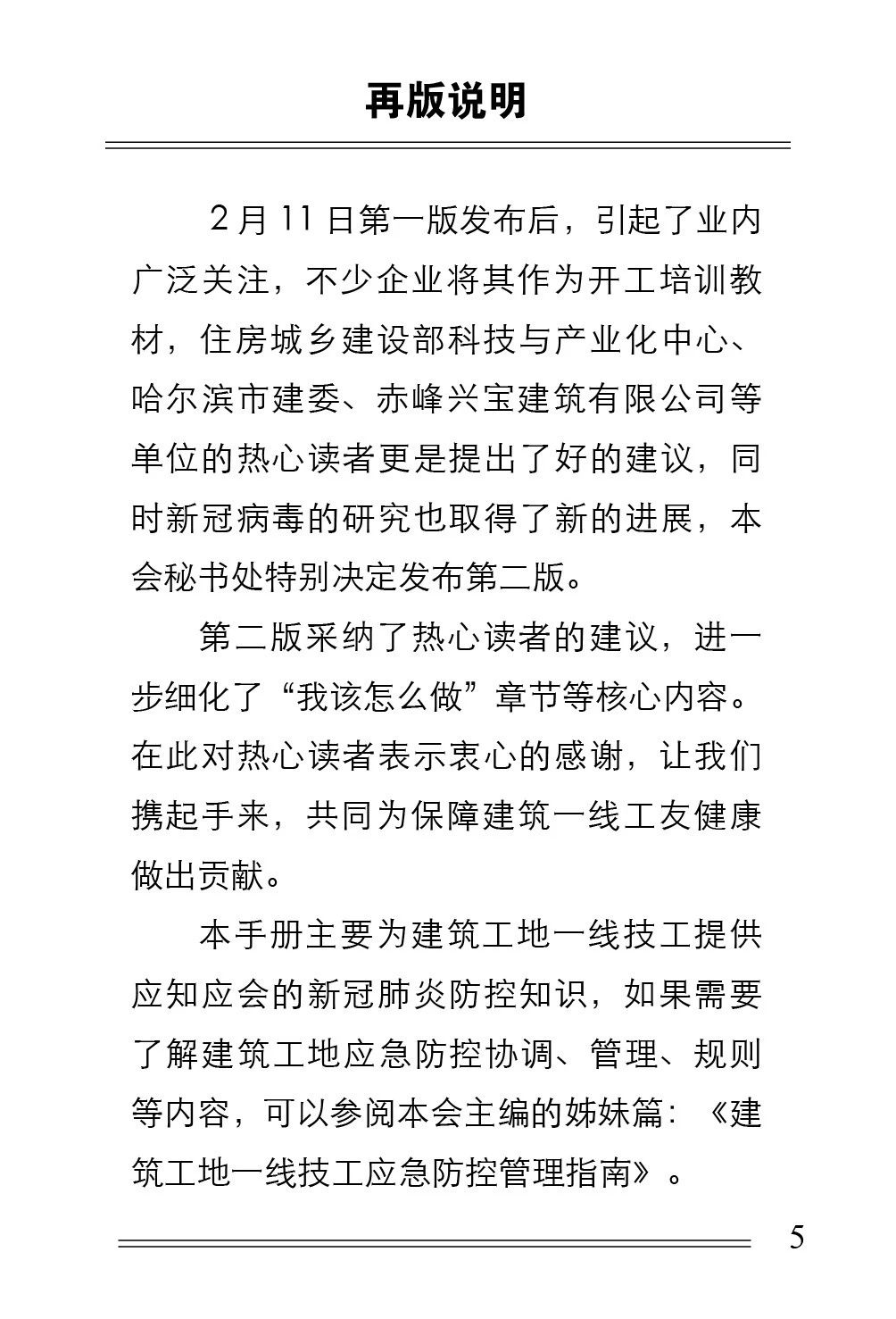 建筑工地一线技工新冠肺炎应急防控知识手册(第二版)